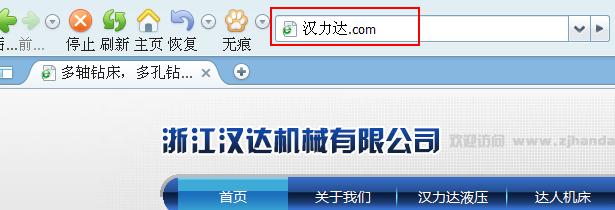為方便客戶查看我司網(wǎng)站,我司申請(qǐng)了中文域名"漢力達(dá).com" "達(dá)人機(jī)床.com“,您只要在地址欄中輸入 "漢力達(dá).com” 或者 "達(dá)人機(jī)床.com" 即可訪問到浙江漢達(dá)機(jī)械有限公司的官方網(wǎng)站。