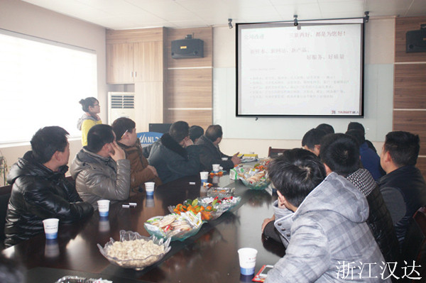 2014.02.09,是浙江漢達(dá)正式開工的好日子,恰遇新年的第一場雪。都說瑞雪兆豐年,公司的各位主管、員工及前來參加年度經(jīng)銷會(huì)議的經(jīng)銷商們,冒著大雪,紛紛地加入到點(diǎn)火儀式當(dāng)中,希望借著這瑞雪和煙花,沾一沾喜氣和好運(yùn),共同期盼著2014年,在浙江漢達(dá)領(lǐng)導(dǎo)層的帶領(lǐng)下,打開局面,事業(yè)更上一層樓。在儀式結(jié)束后,由營銷中心負(fù)責(zé)在四樓會(huì)議室,召開了年度經(jīng)營商會(huì)議。公司總經(jīng)理出席了會(huì)議,并作講話。營銷應(yīng)副總為經(jīng)營銷商解讀了新年里的銷售獎(jiǎng)勵(lì)政策,并對(duì)上一年度的銷售精英進(jìn)行了獎(jiǎng)勵(lì)。技術(shù)副總應(yīng)偉達(dá)則就公司最新開發(fā)和主推的幾款產(chǎn)品,對(duì)其性能、技術(shù)參數(shù)等作了詳細(xì)的介紹。
