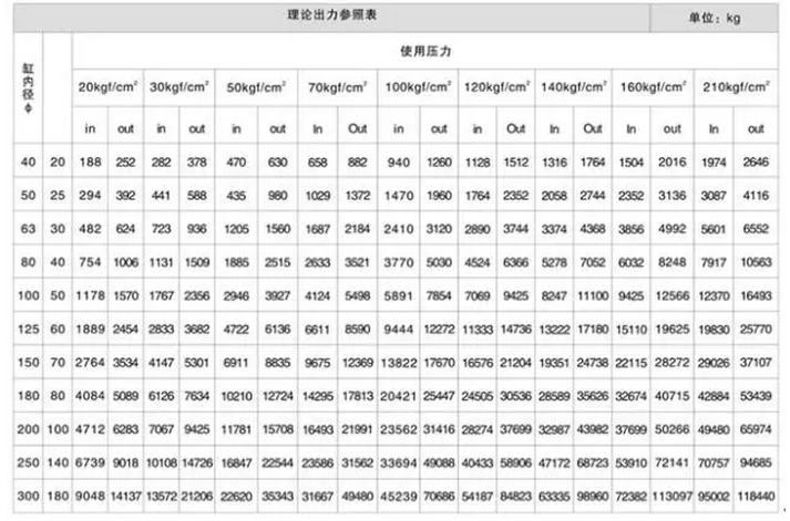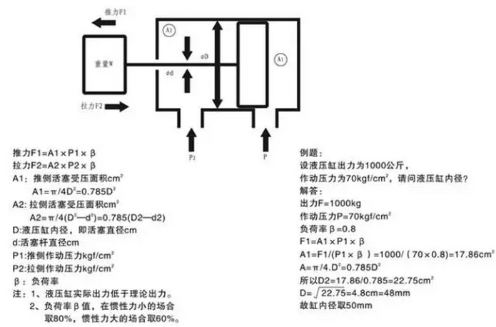 由力的計算公式可知: F = PS(P:壓強; S:受壓面積—由油缸的缸徑、桿徑?jīng)Q定)