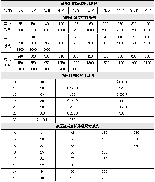 國(guó)家標(biāo)準(zhǔn)GB/T7938-1987規(guī)定了液壓缸公稱壓力系列